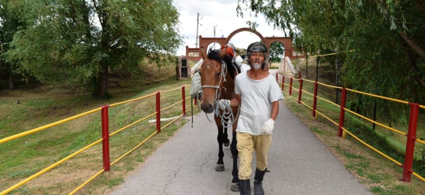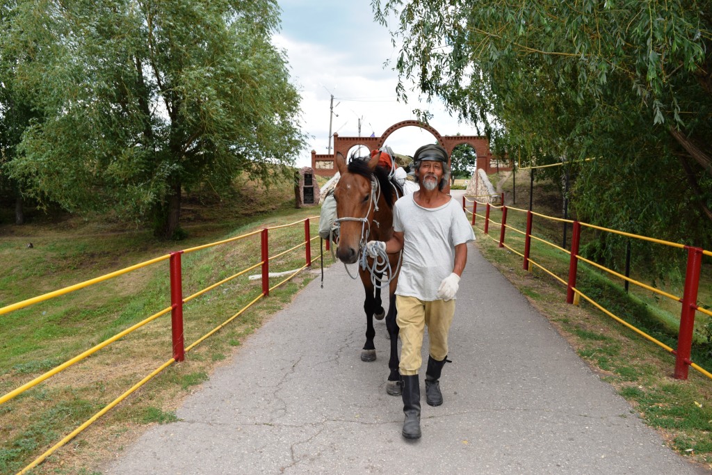 Затем Цзин Ли с радостью принял приглашение фермера Сергея Кулькова и отправился в расположенный недалеко от крепости музей каменных изваяний. Здесь китаец первым делом разгрузил свою гужевую лошадь, сняв с нее многочисленное походное снаряжение. Семилетнего жеребца китайцу специально для похода, который он посвятил чемпионату мира по футболу, подарили в Карачаево-Черкессии.
