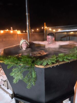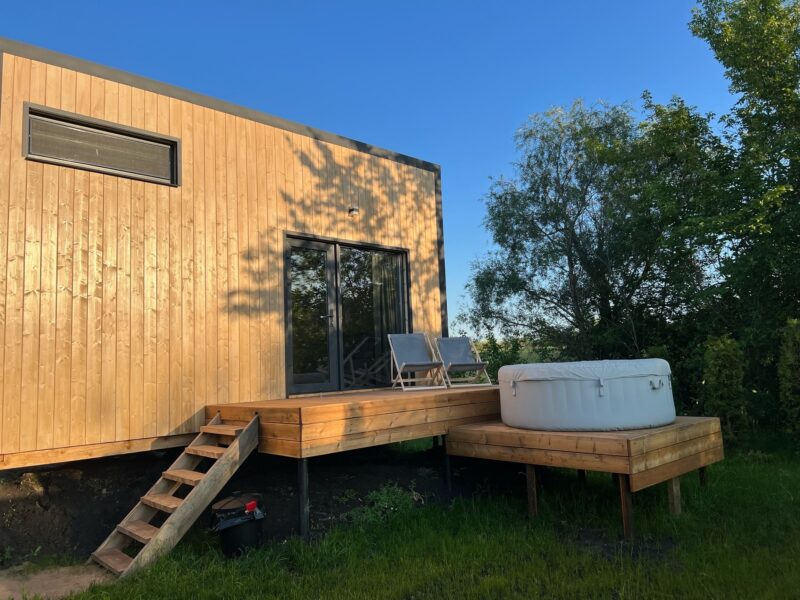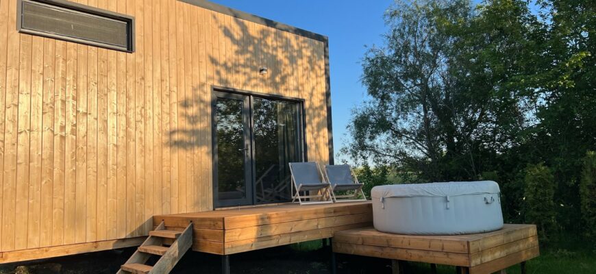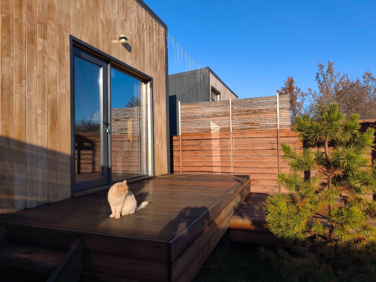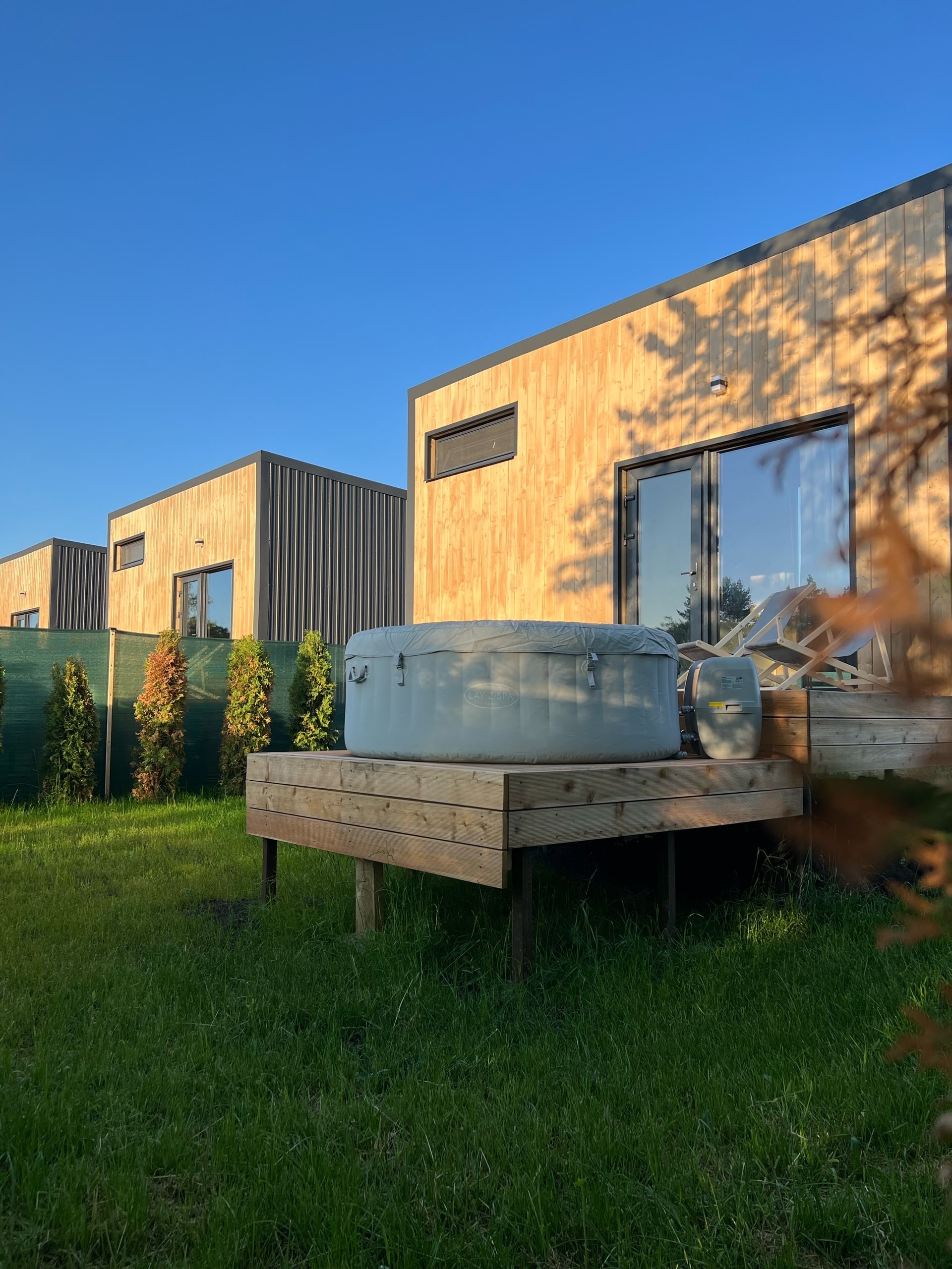 Каждый домик оборудован панорамным окном, открывающим вид на лес, обеспечивая комфорт и ощущение единения с природой. Внутри гостей ожидает просторная комната площадью 18 квадратных метров, оснащённая двуспальным матрацем на мансарде и раскладным диваном, рассчитанным на двух взрослых и двух детей. Дополнительные удобства включают в себя сауну, санузел с душем и туалетом, а также кухню с необходимым оборудованием: микроволновые печи, холодильник, кухонный гарнитур и посуду.