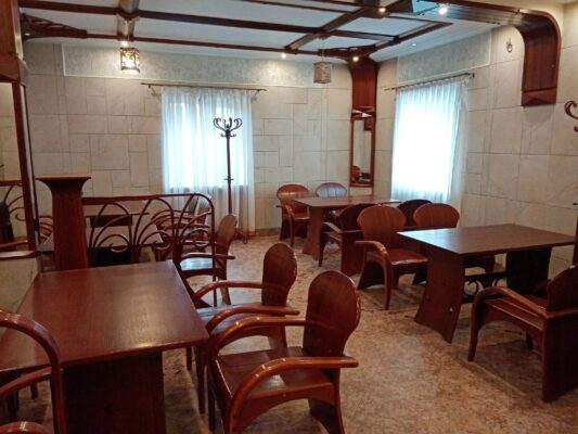 В отеле также имеется кафе, в котором проводят свадьбы, юбилеи, детские праздники