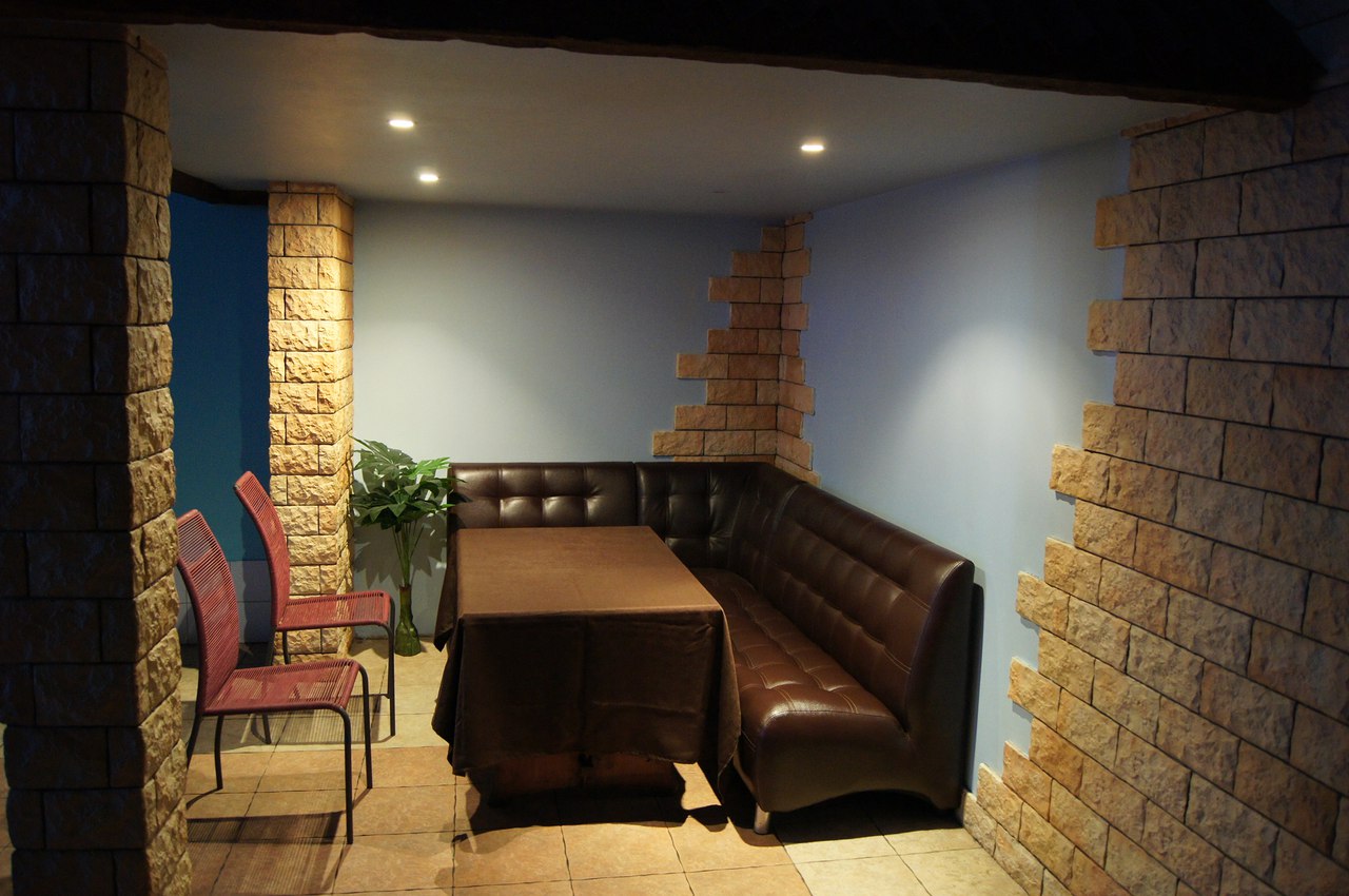 В банкетном зале могут с комфортом разместиться 50 человек. Здесь находятся две мягкие зоны, столики, стулья, бар, сауна, профессиональное световое оборудование и музыкальная аппаратура.