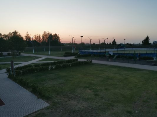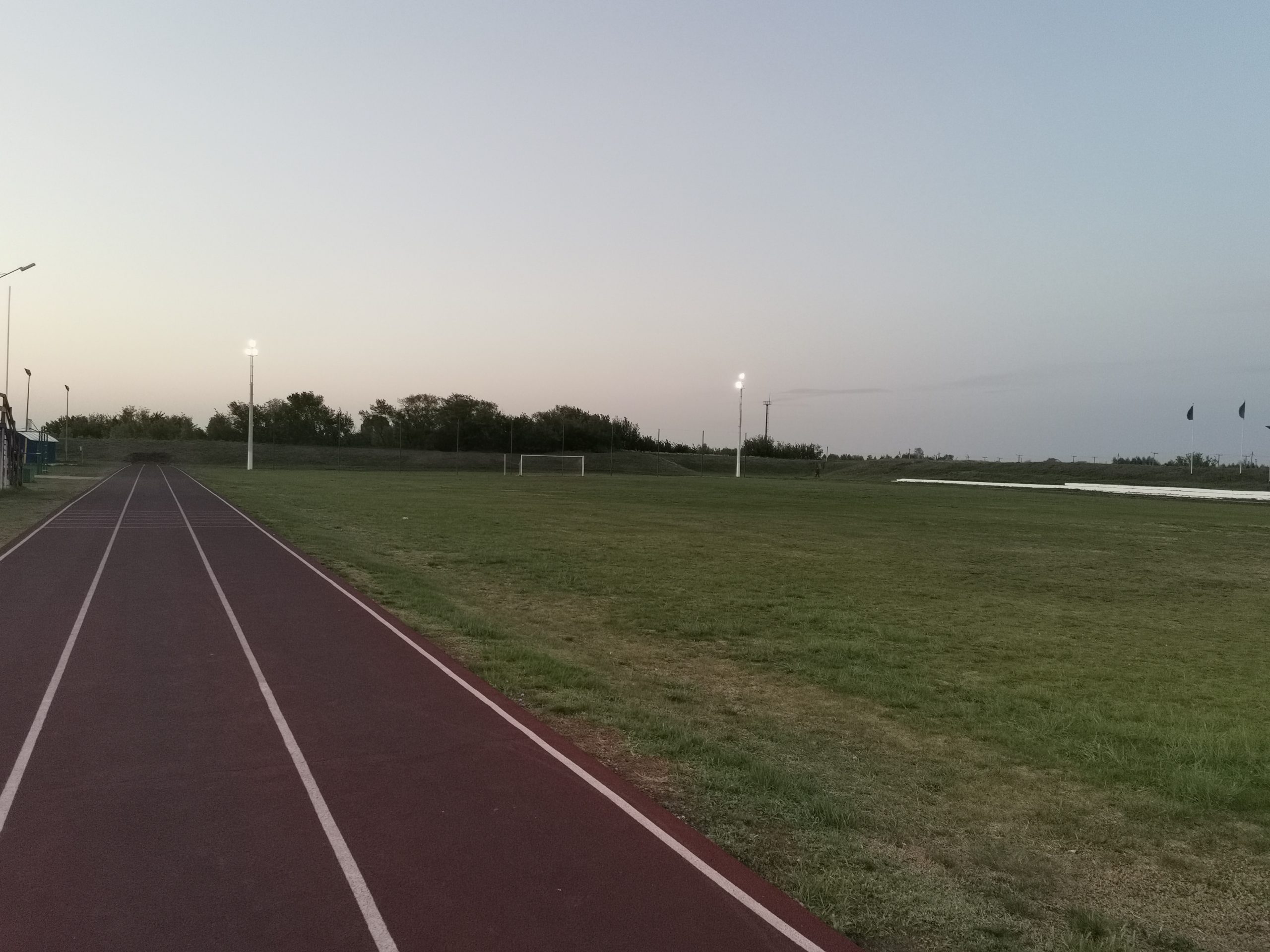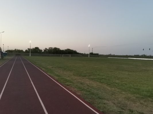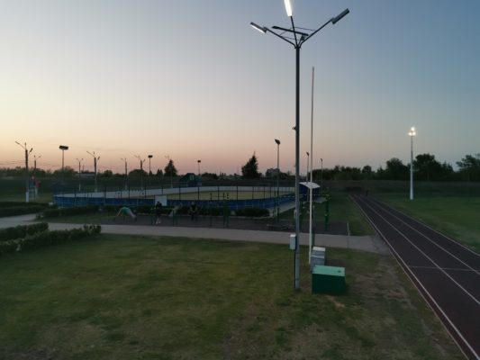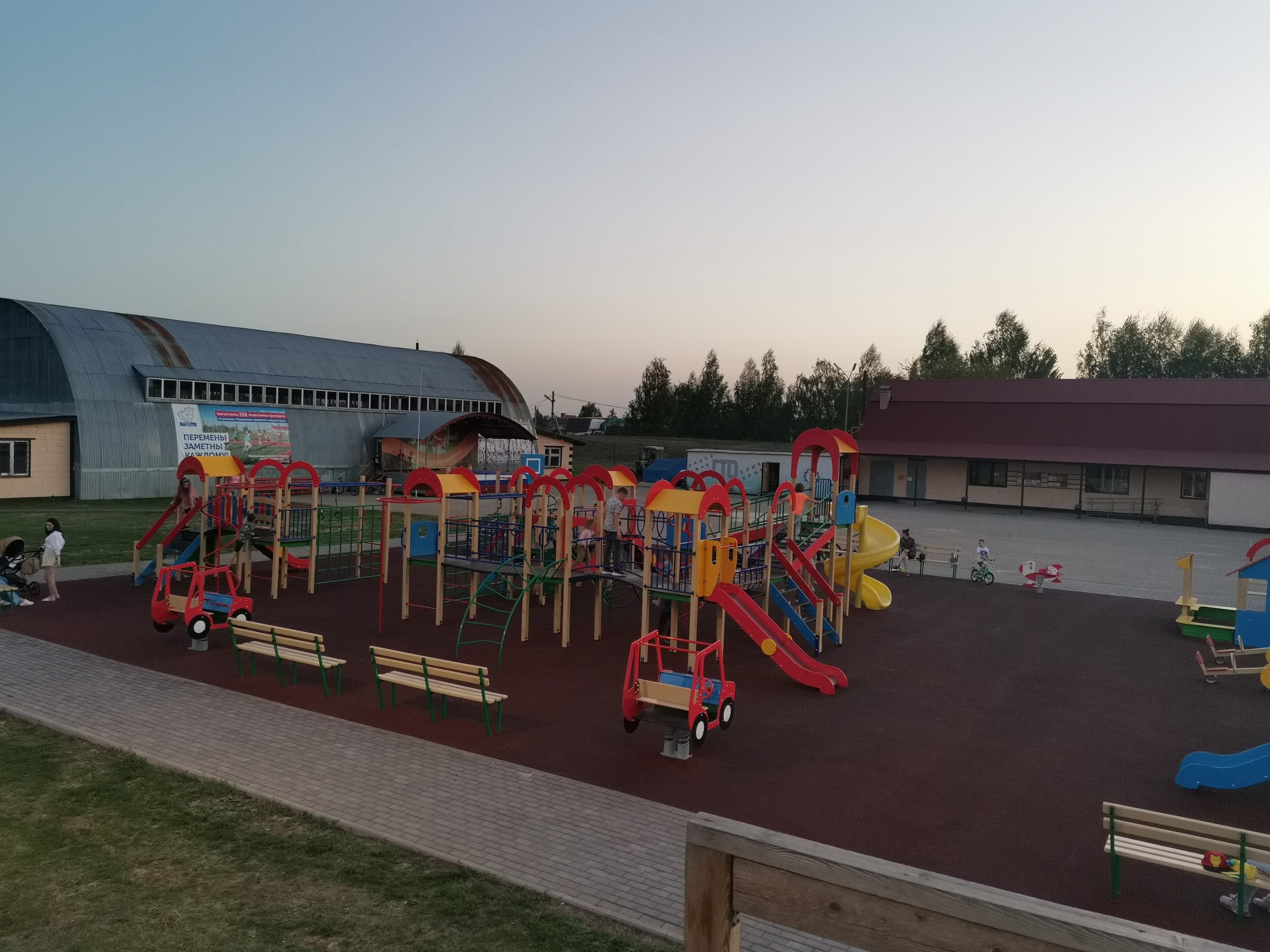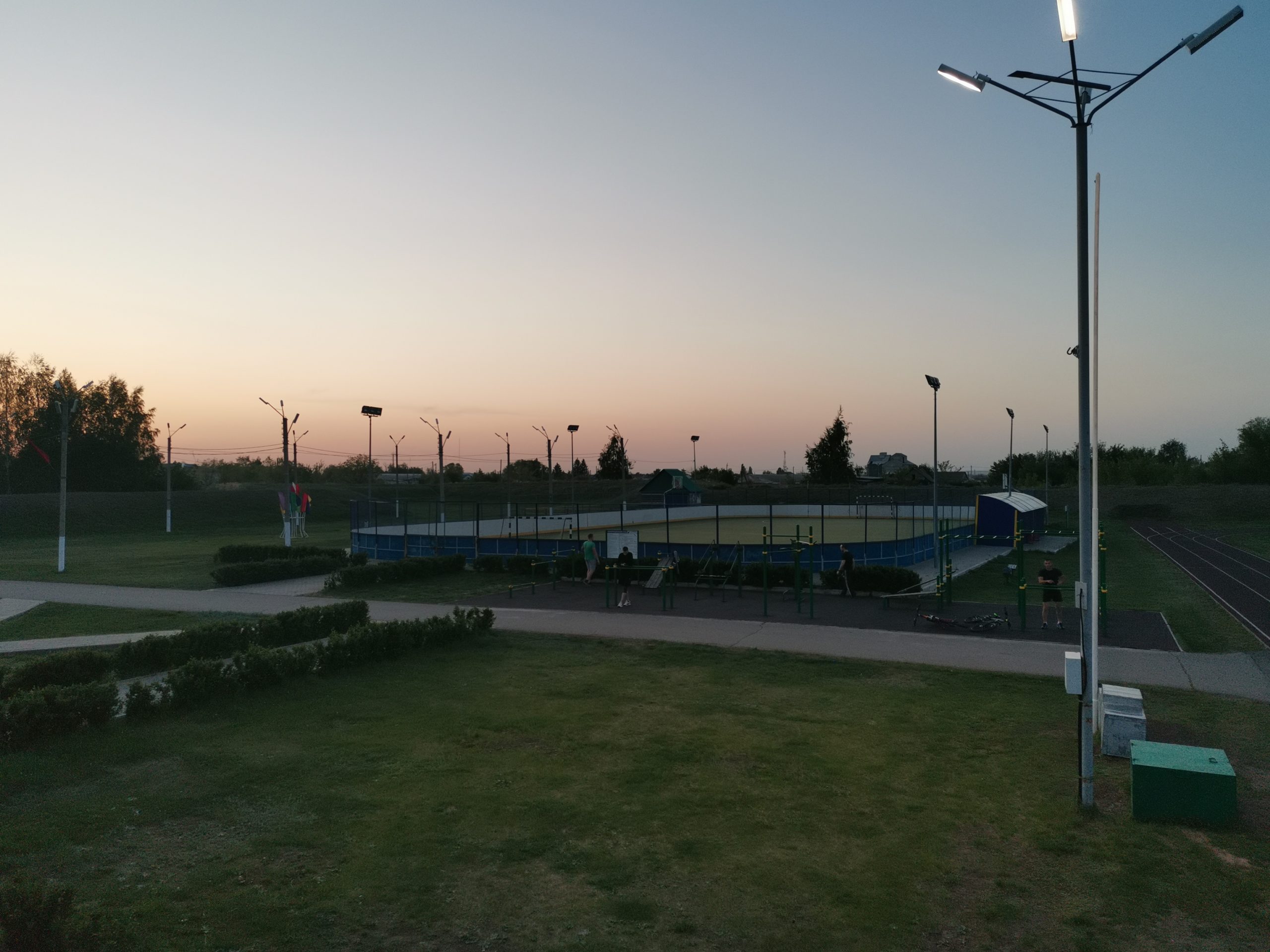 Большой детский городок, беговые дорожки, стадион с естественным травяным покрытием.