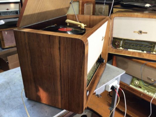 Николай организовал свой мини-музей, где рассказывает историю конкретных радиол и радиоприёмников и демонстрирует их в работе.