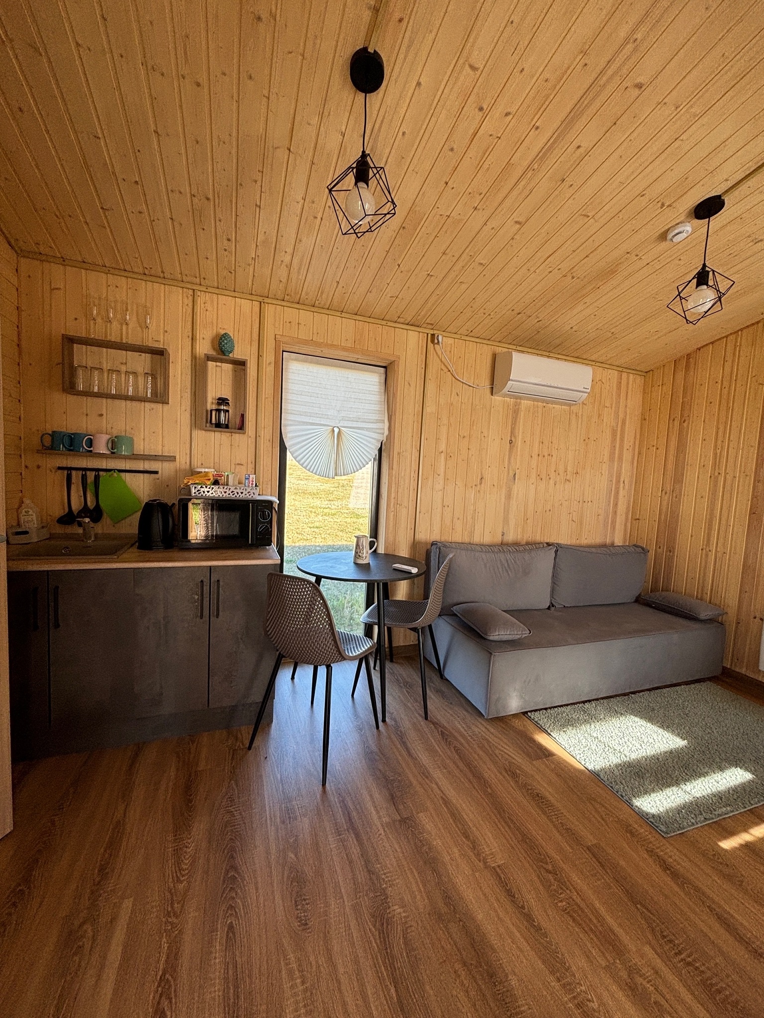 Посёлок предлагает своим посетителям проживание в комфортных и экологически чистых домах, оборудованных всем необходимым для приятного отдыха: