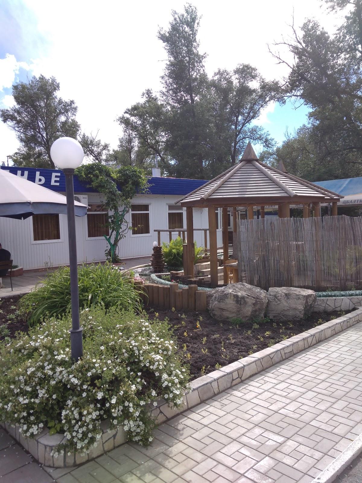 На территории комплекса работает кафе. Повара приготовят для Вас превосходные аппетитные крылышки. А если Вы хорошо «погуляли» накануне, то на завтрак Вам предложат отведать освежающие похмельные щи. Разумеется, это далеко не всё, чем Вы сможете удивить свои гастрономические пристрастия. Например, приготовление восточных блюд на открытом огне: шашлык, плов, лагман, шурпа. По желанию клиентов — утренний хаш. Для постоянных гостей возможен вариант приготовления блюд из Ваших продуктов и блюд на заказ по Вашим рецептам и пожеланиям.