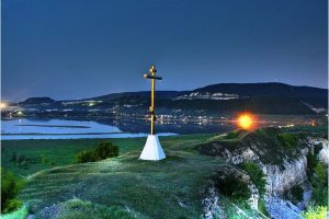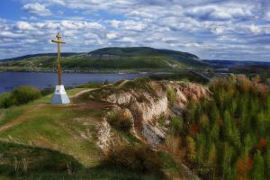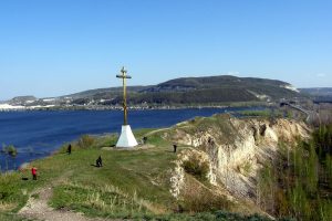 В честь 1000-летия крещения Руси на кургане установлен поклонный крест. Удивительное совпадение — вертолет для установки дали на праздник Крестовоздвижения. Тот день выдался ненастным, свирепствовали ураган с дождем, небо затянуло плотное покрывало мрачных туч. Но вовремя воздвижения креста, над курганом в темном небе будто приоткрылось окно. На вершине холма образовался оазис тишины, залитый солнечным светом. Через несколько дней чудесного воздвижения один из вертолетчиков крестился в местной Христорождественской церкви.