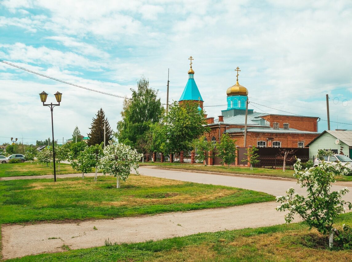 Белокаменный, златоглавый храм находился на месте современной музыкальной школы и Дома культуры «Мечта». Каменные дома священнослужителей сохранились до сих пор. Они расположены напротив здания узла связи. Если во всю силу звучал колокол, который весил 220 пудов, то его звон во времена сильных зимних буранов был слышан на несколько десятков километров. Это помогало не заблудиться обозам, идущим из Кошек, Сергиевска и Самары.