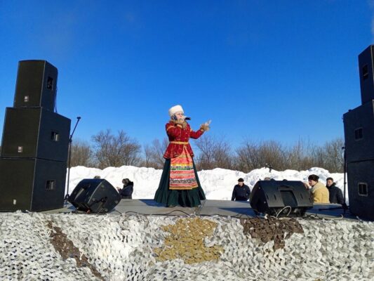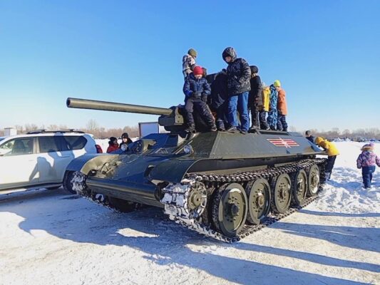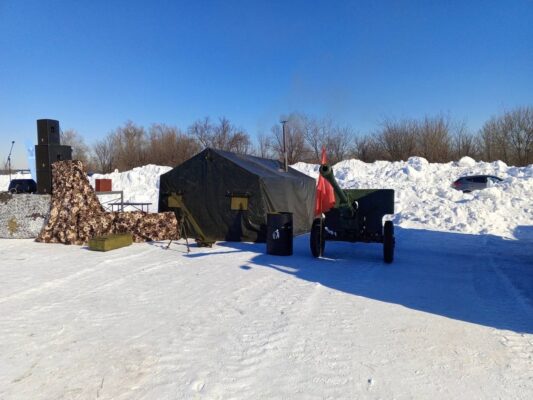 полевая кухня и выставка военной техники, звучали военно-патриотические песни в исполнении коллективов района. Дети и взрослые участвовали в «Уроках мужества» и в фотосессиях с военной техникой. Желающие могли прокатиться на квадроциклах.