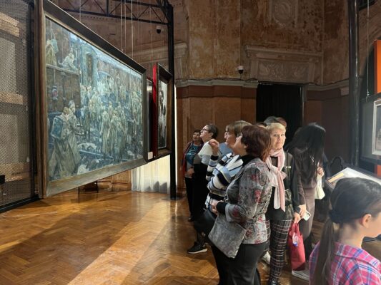 Волонтеры культуры и пенсионеры Красноярского района посетили выставку, где смогли ознакомиться с произведениями известных советских художников, переживших ужасы войны.