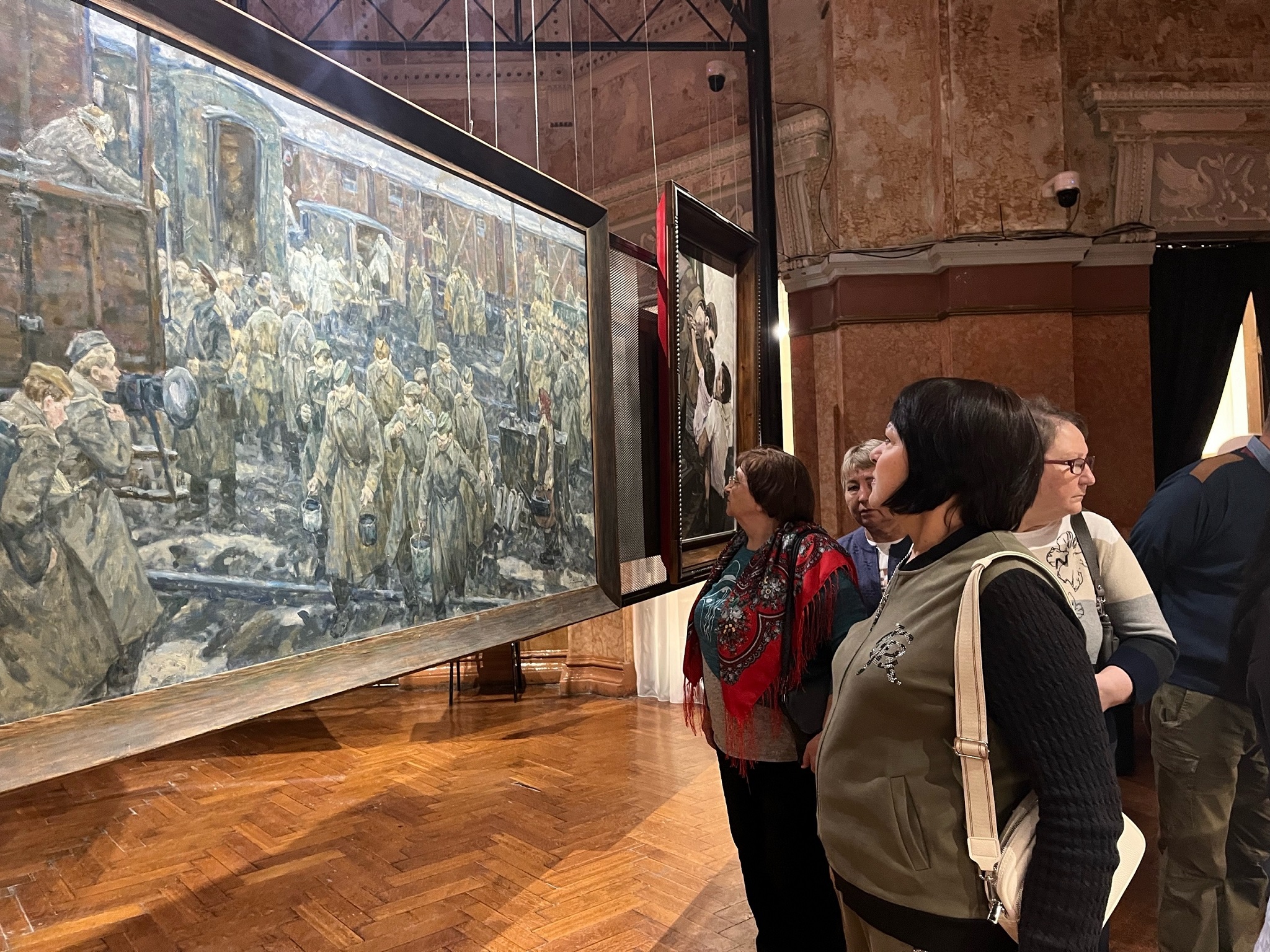Помимо картин, гости могли увидеть личные вещи, письма, фотографии и даже стихотворения самих фронтовиков. Эти экспонаты помогли создать атмосферу погружения в эпоху, когда каждый художник отражал боль и героизм народа в своем творчестве.