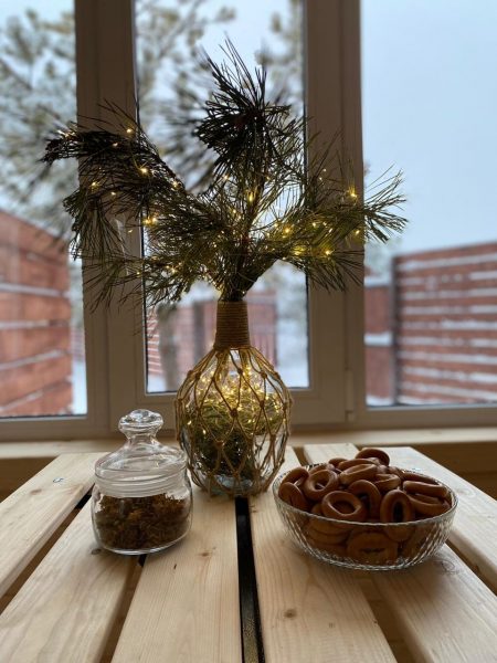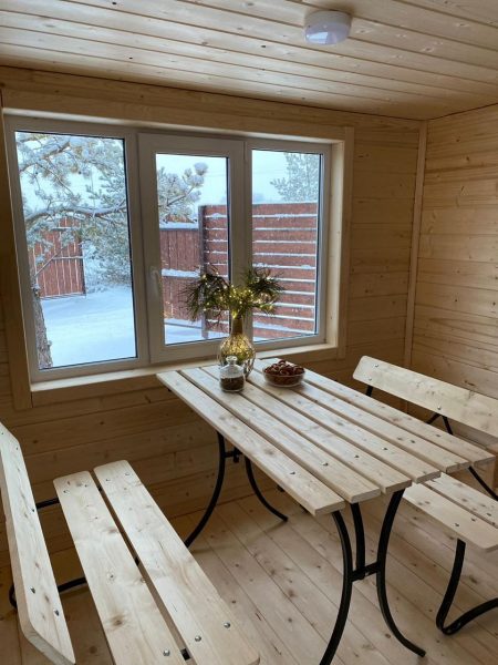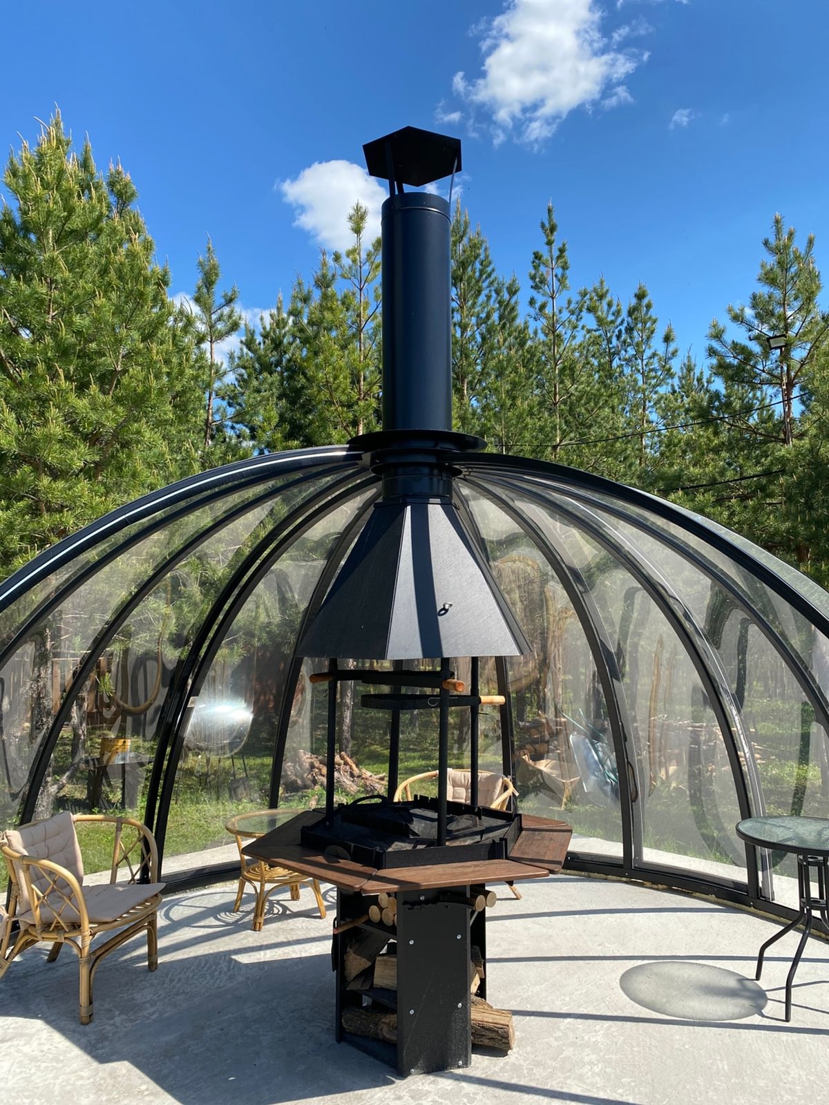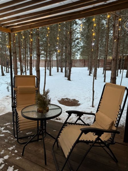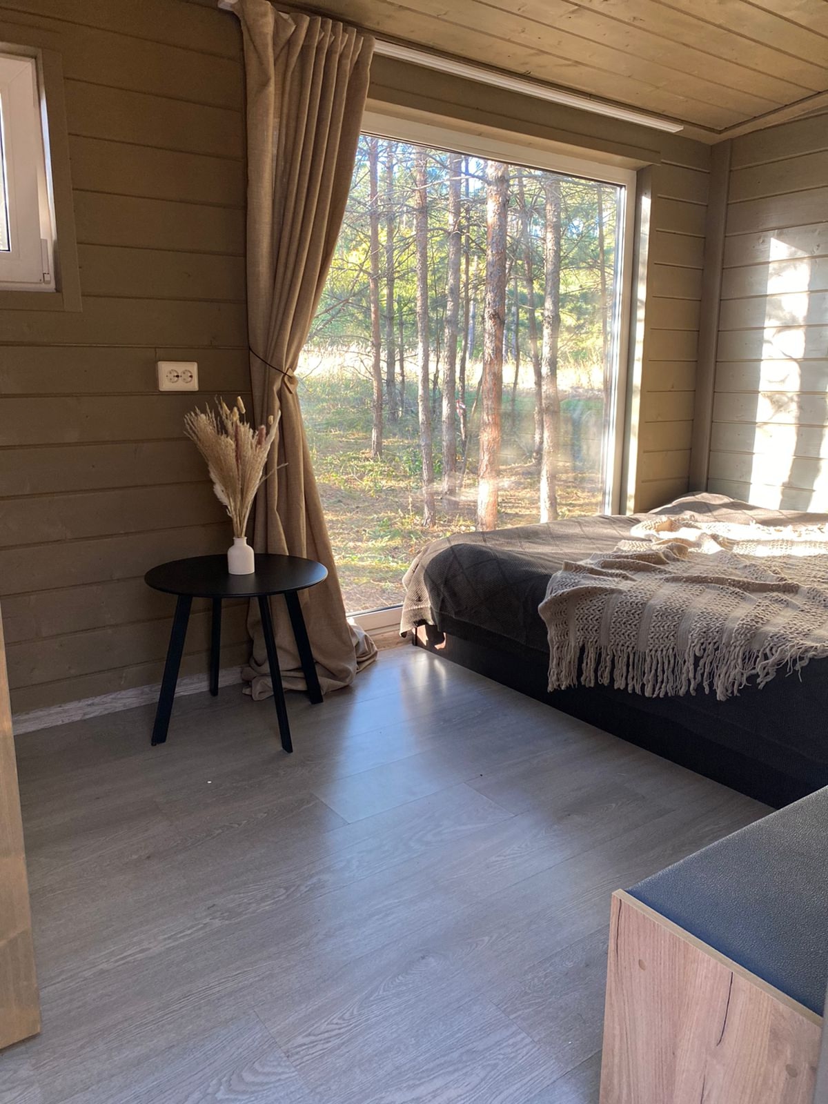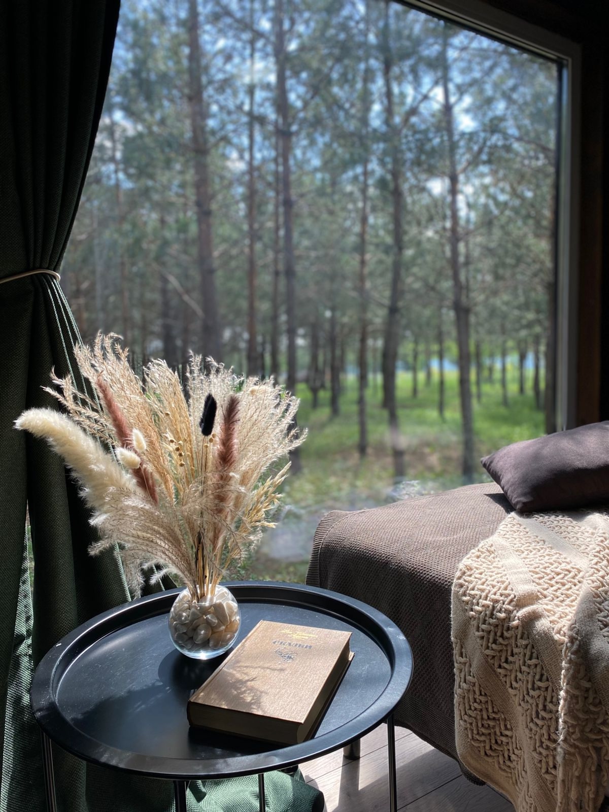 Глэмпинг предлагает всего четыре жилых двухместных домика с большими панорамными окнами, через которые открывается захватывающий вид на окружающую природу. Каждый домик оборудован двуспальными кроватями, свежим постельным бельем, полотенцами, бытовой техникой и собственной ванной комнатой. Уютная терраса позволяет наслаждаться свежим воздухом и красотой леса.