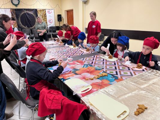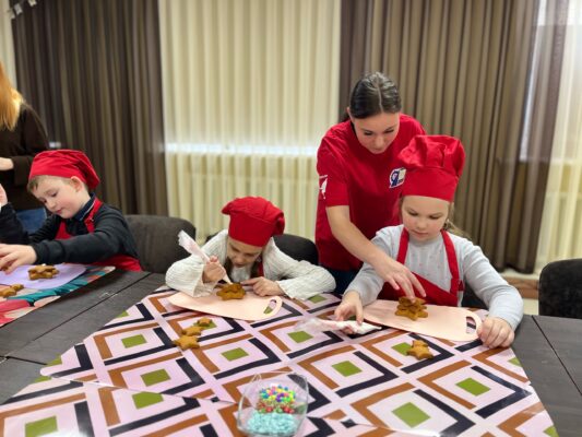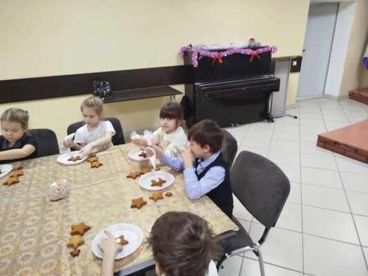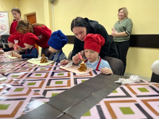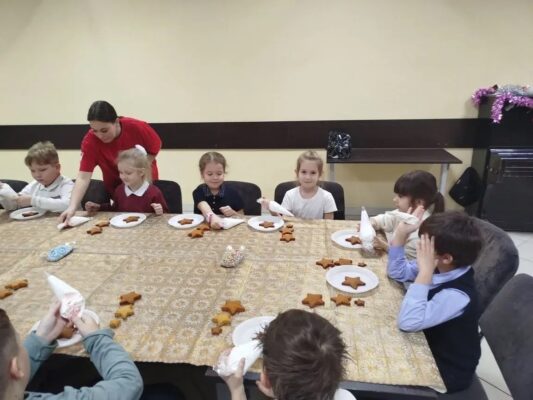 В Красноярский государственный техникум стартовала новогодняя программа, на которой ребята участвуют в мастер-классе по созданию новогодней елочки из имбирных пряников.