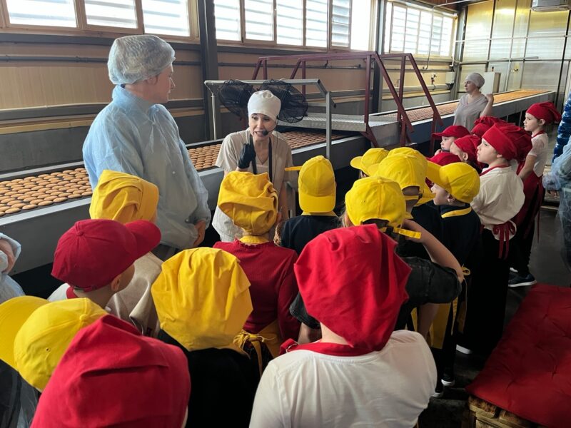 На экскурсии ребята узнали много интересного о производстве печенья. Они познакомились с оборудованием, которое используется на фабрике, включая современные линии, печи и упаковочные аппараты. Дети были удивлены масштабом производства: фабрика выпускает свыше 1000 тонн кондитерских изделий в месяц!