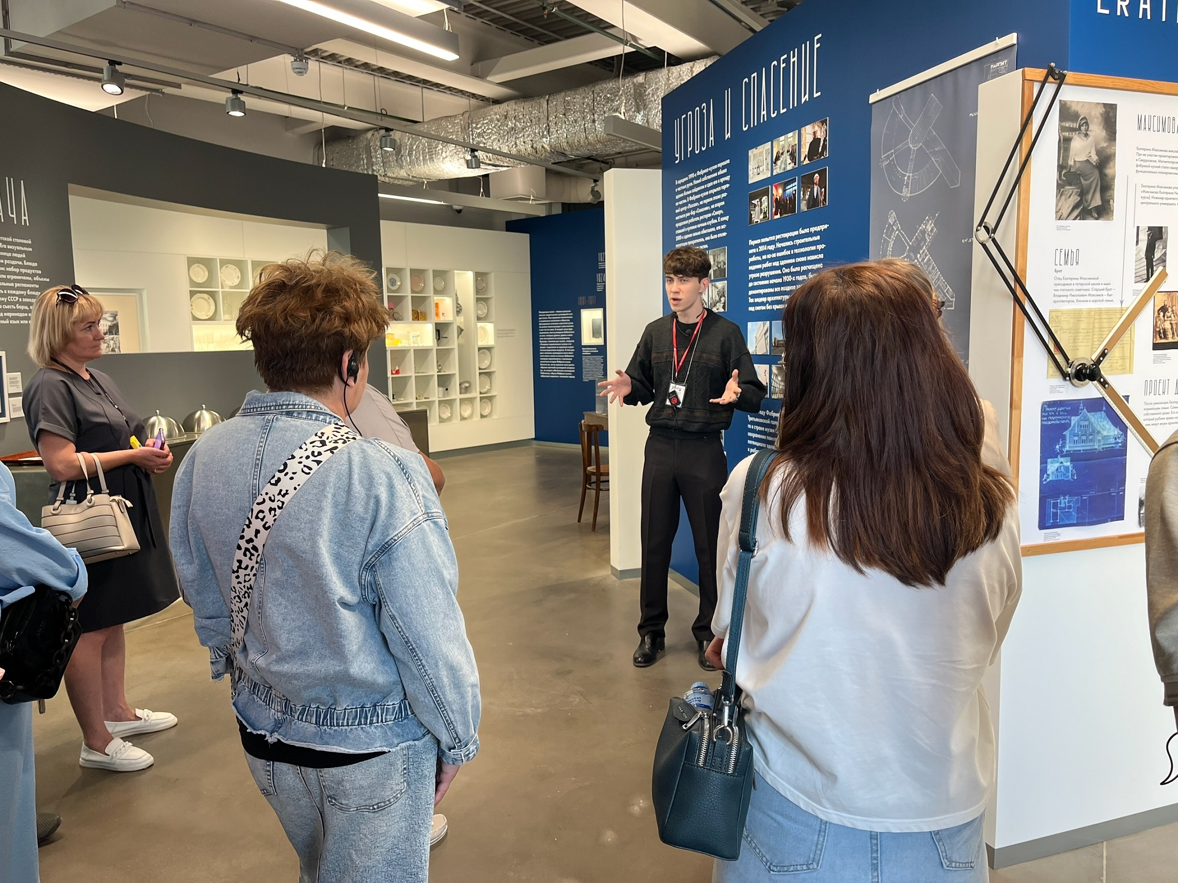 Посещение началось с экскурсии по музею «Фабрика-кухня», расположенного на первом этаже. Это здание является настоящим шедевром архитектурного стиля конструктивизм. Здесь гости узнали историю уникального сооружения, которое служило символом эпохи начала XX века. Выставочная экспозиция познакомила участников мероприятия с различными аспектами быта и кулинарии советских времен, включая знаменитый нарпит — особый вид питания, разработанный в СССР.